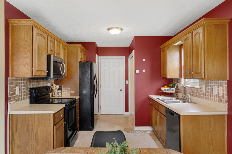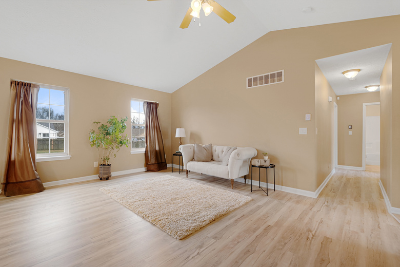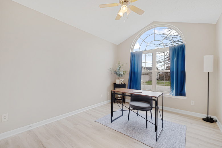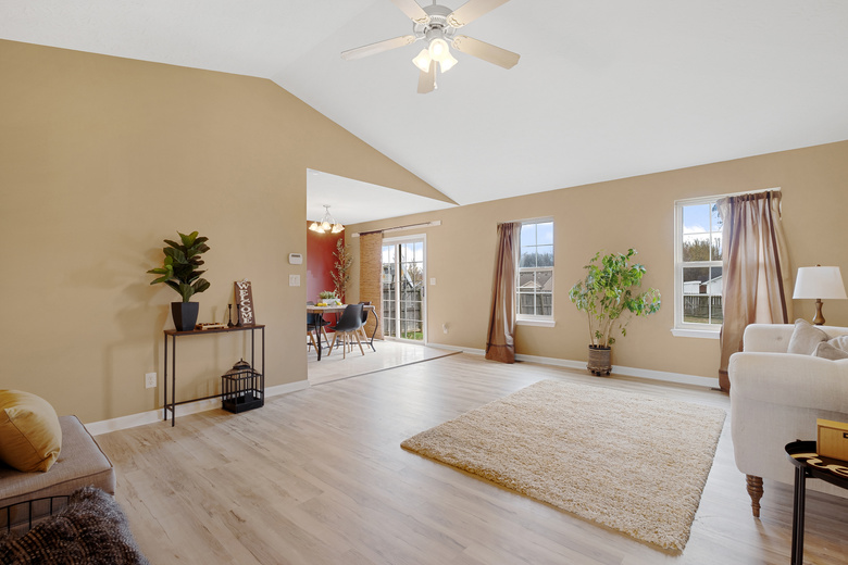 Step inside to discover brand new LVP flooring throughout the living room and bedrooms. The living room invites you in with its vaulted ceiling, creating an airy and inviting atmosphere, perfect for relaxing or entertaining guests. The kitchen features ceramic tile flooring, a pantry, and all appliances will remain. A first-floor laundry closet adds an extra layer of convenience. Retreat to the primary bedroom, complete with a walk-in closet and a private bathroom. Downstairs, the finished daylight basement awaits, offering a versatile space with a fourth room (no egress), a full bathroom, and a vast open area with beautiful built-in cabinets, ideal for gatherings or quiet moments. Outside, a large fenced backyard beckons, providing ample space for outdoor activities and relaxation on the patio.